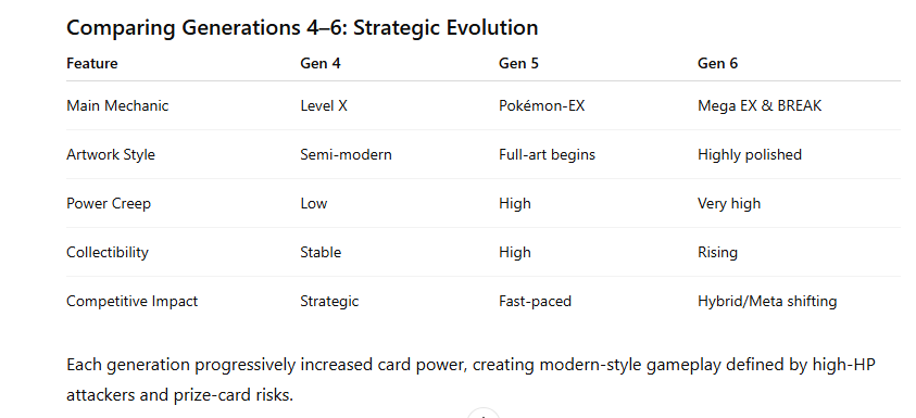 This guide provides a detailed and analytical look at how Pokémon cards evolved from Gen 4 to Gen 6, including design philosophy, rarity progression, competitive trends, and collector value.
