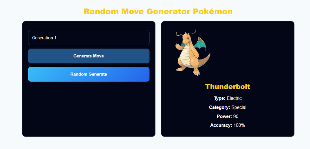 Select your Pokémon or generation, click “Generate,” and the tool will provide a move instantly. Use it for strategy, practice, or fun.