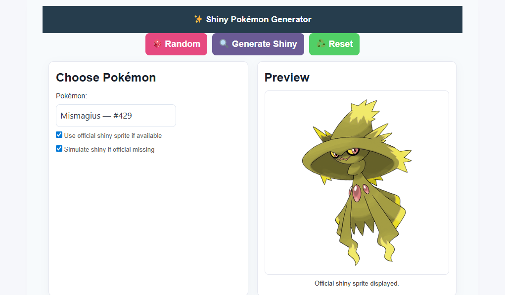 The shiny Pokémon generator is a very simple and fun tool that shows you many random shiny Pokémon. Shiny Pokémon are usually very rare and quite difficult to catch in the game, but with this tool you can easily explore random shiny Pokémon. Just one click and you can see how your favorite Pokémon looks in its shiny form. This makes the random shiny Pokémon experience very exciting and entertaining for fans.